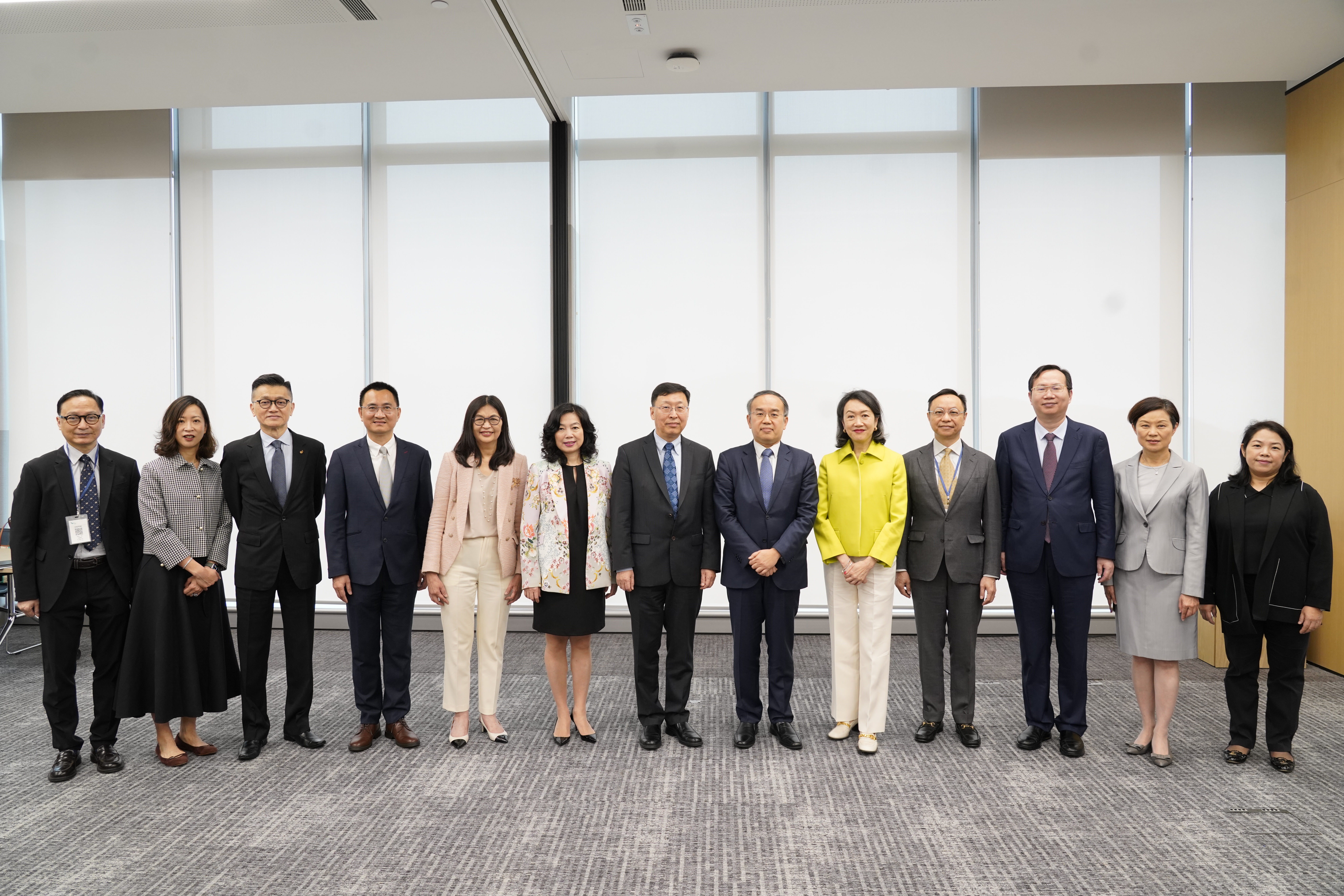 The roundtable of the Green and Sustainable Finance Cross-Agency Steering Group and the International Sustainability Standards Board is attended by (from left): the Chief Executive Officer of the Insurance Authority, Mr Clement Cheung; the Head of Listing of the Hong Kong Exchanges and Clearing Limited, Ms Katherine Ng; the Managing Director of the Mandatory Provident Fund Schemes Authority, Mr Cheng Yan-chee; the Commissioner for Climate Change of the Environmental and Ecology Bureau, Mr Wong Chuen-fai; the Chief Executive Officer of the Securities and Futures Commission, Ms Julia Leung; the Permanent Secretary for Financial Services and the Treasury (Financial Services), Ms Salina Yan; the Vice Chair of the International Sustainability Standards Board, Mr Hua Jingdong; the Secretary for Financial Services and the Treasury, Mr Christopher Hui; the Vice Chair of the International Financial Reporting Standards Foundation Trustees, Ms Teresa Ko; Deputy Chief Executive of the Hong Kong Monetary Authority, Mr Darryl Chan; the Beijing Office Director and Special Adviser to Chair of the International Sustainability Standards Board, Mr Zhang Zhengwei; the Chief Executive and Registrar of the Hong Kong Institute of Certified Public Accountants, Ms Margaret Chan; and the Acting Chief Executive Officer of the Accounting and Financial Reporting Council, Ms Janey Lai.