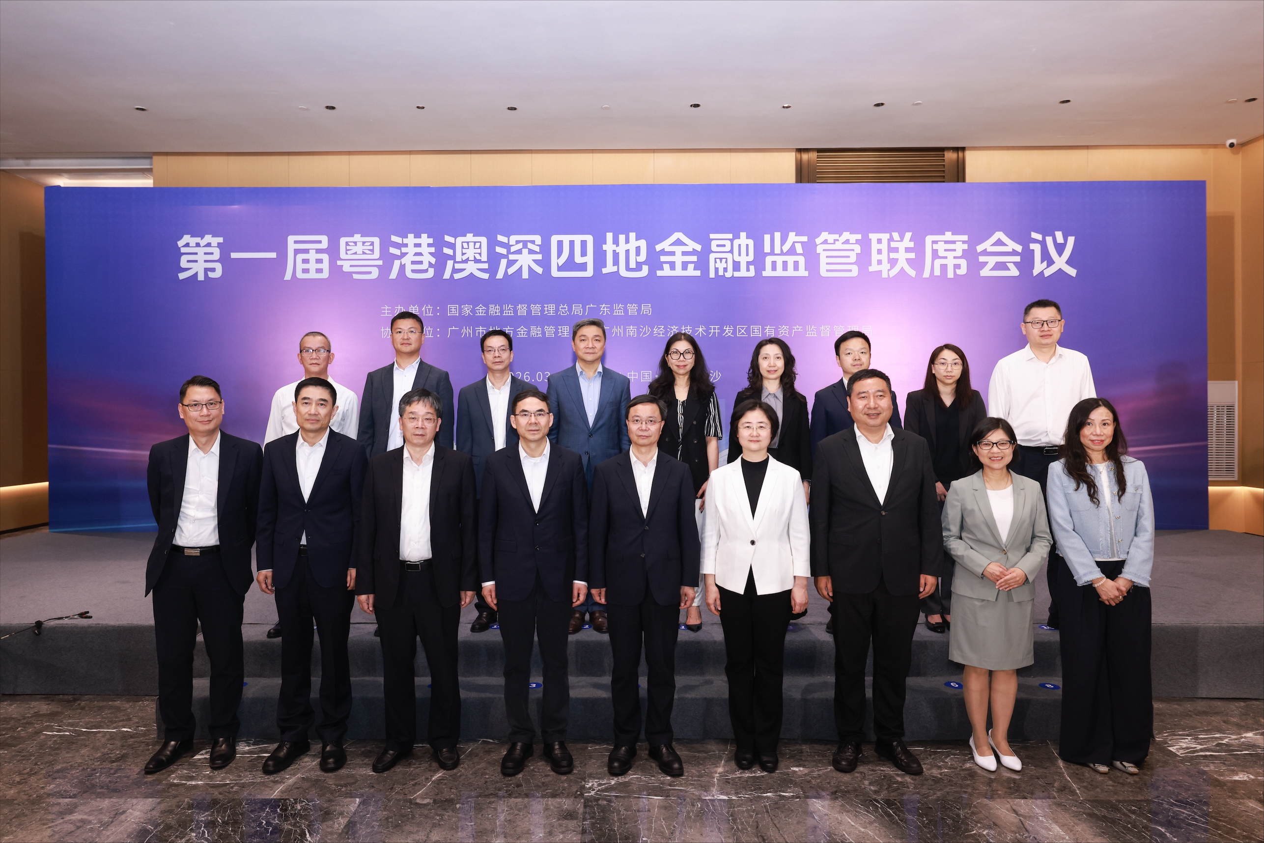 2026年3月23日至24日,第一屆粵港澳深四地金融監管聯席會議在廣州南沙召開。本屆會議由廣東金融監管局主辦,香港金融管理局、香港保險業監管局、澳門金融管理局、深圳金融監管局有關負責人出席會議。金融監管總局有關司局及廣東省、廣州市地方政府有關負責人應邀到會。