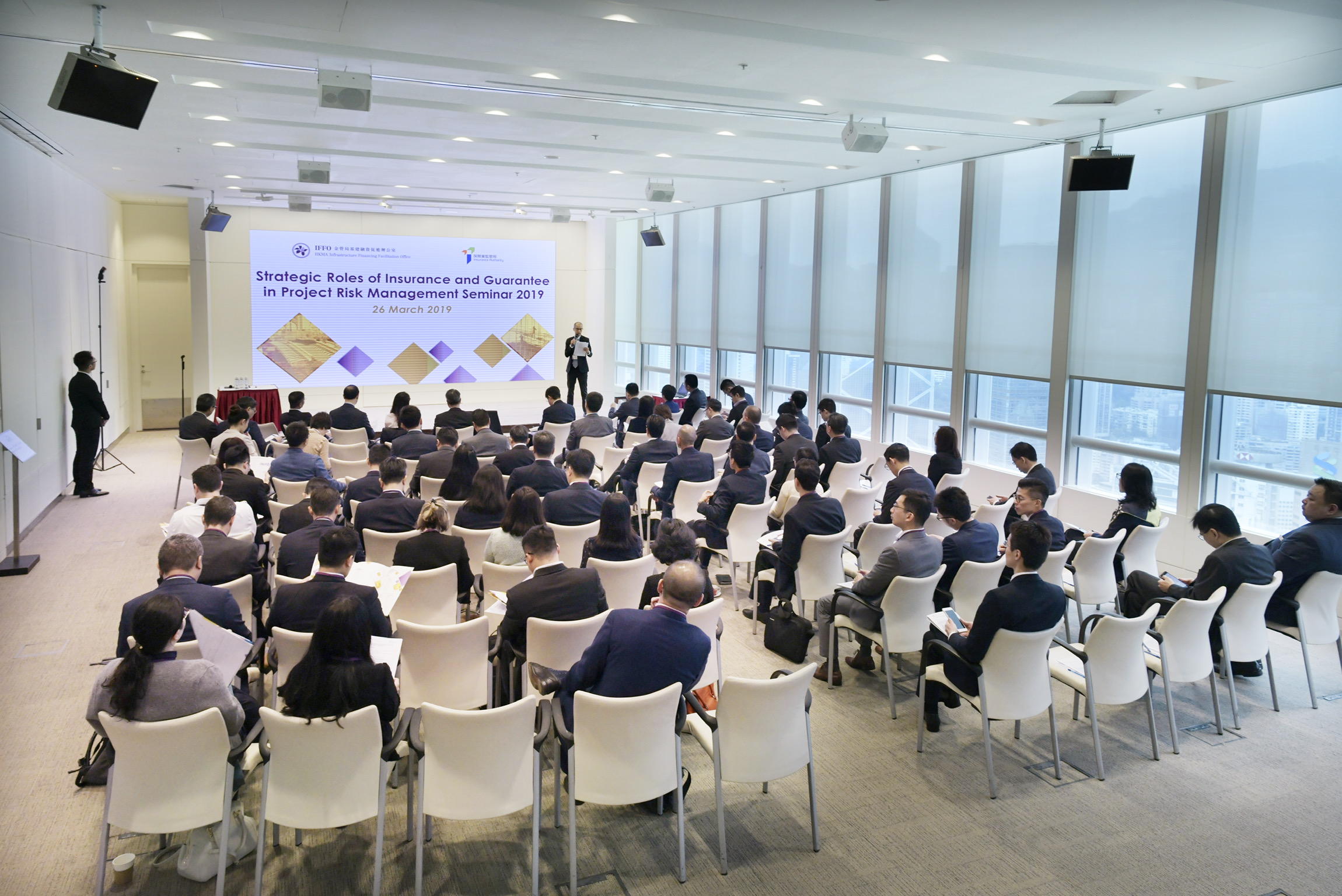 金管局基建融资促进办公室(IFFO)与保险业监管局(保监局)于今天(2019年3月26日)共同举办了一场研讨会,探讨保险及担保在项目风险管理中的重要性。研讨会吸引了80多名高层代表出席,主要包括IFFO的合作夥伴如出口信贷机构、投融资者、多边金融机构和项目拥有者,以及来自风险管理专业并参与了保监局「一带一路保险交流促进平台」(BRIEF)的保险公司、再保险公司、专属自保保险公司和保险经纪公司。