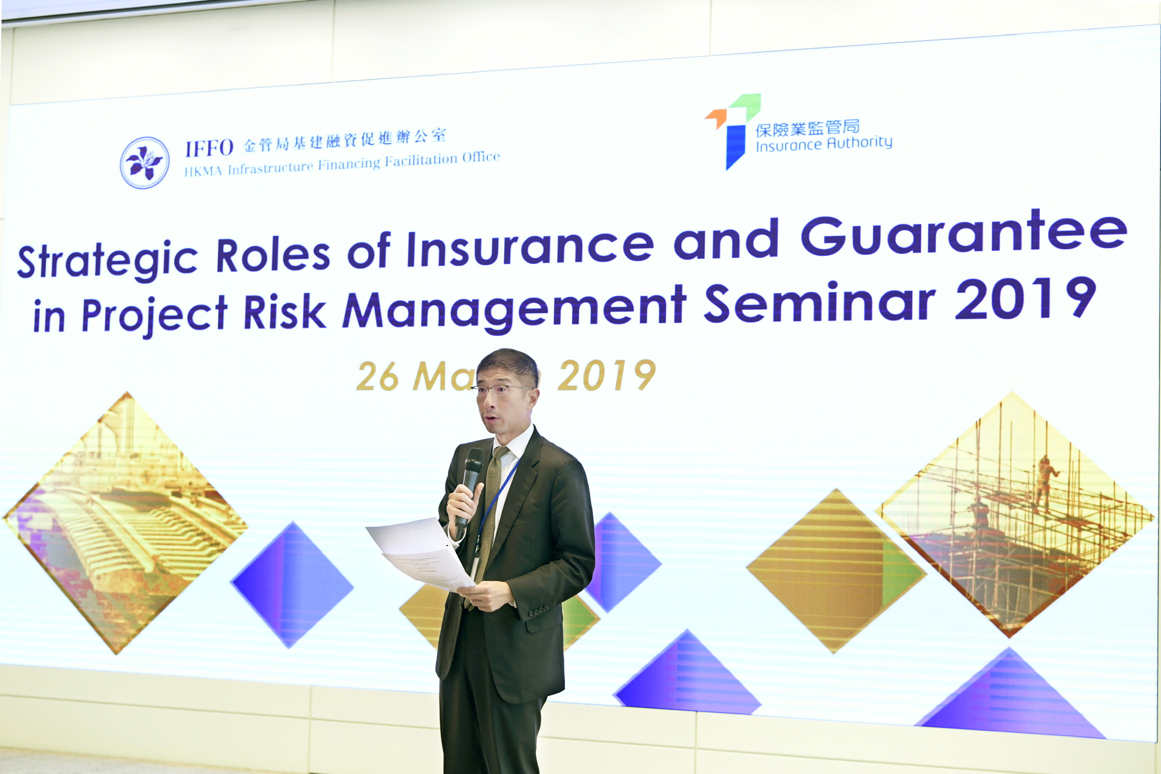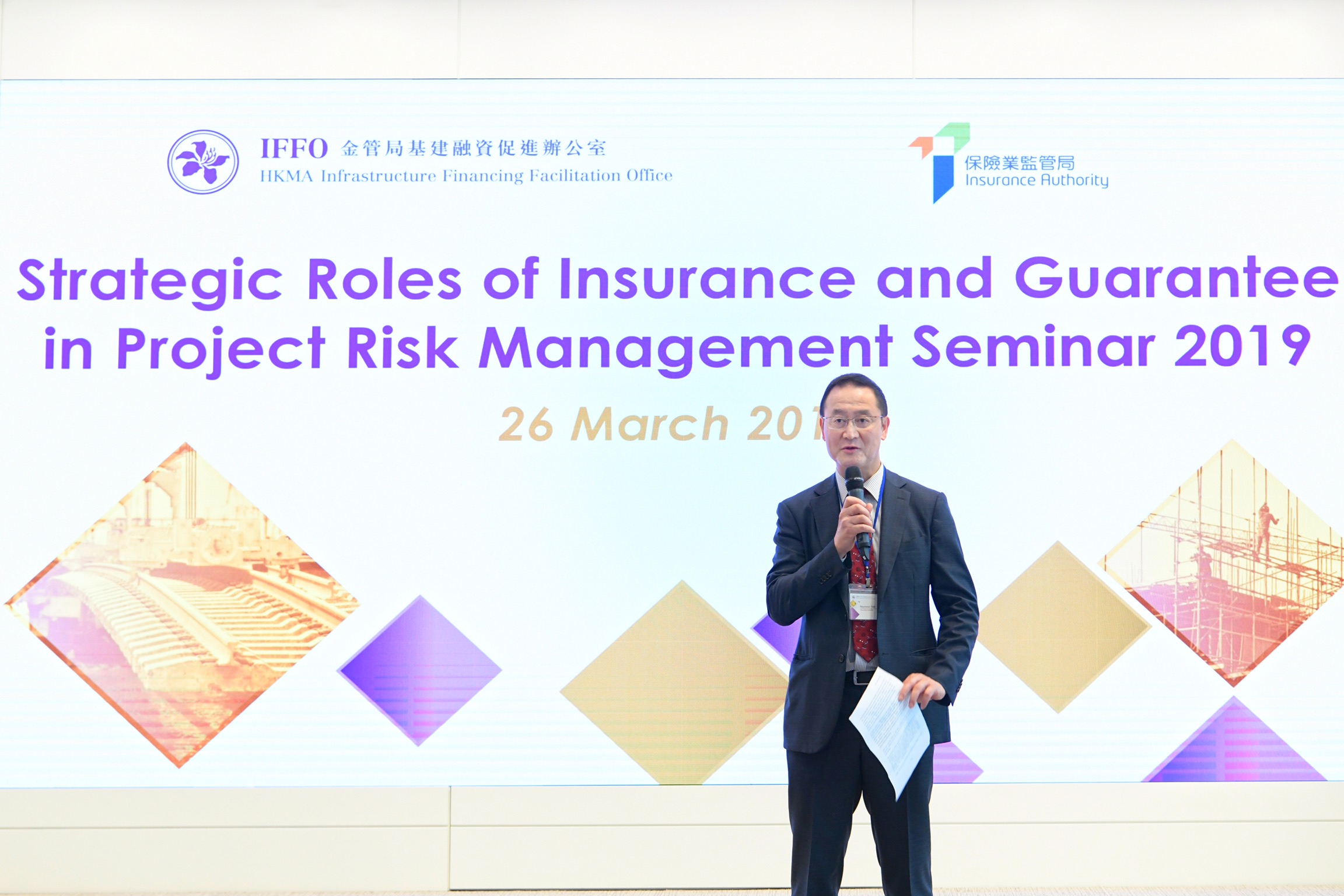 保监局执行董事(政策及发展)谭伟民先生致开幕辞并谈及保险业界可以如何帮助管理和缓解复杂项目的风险。