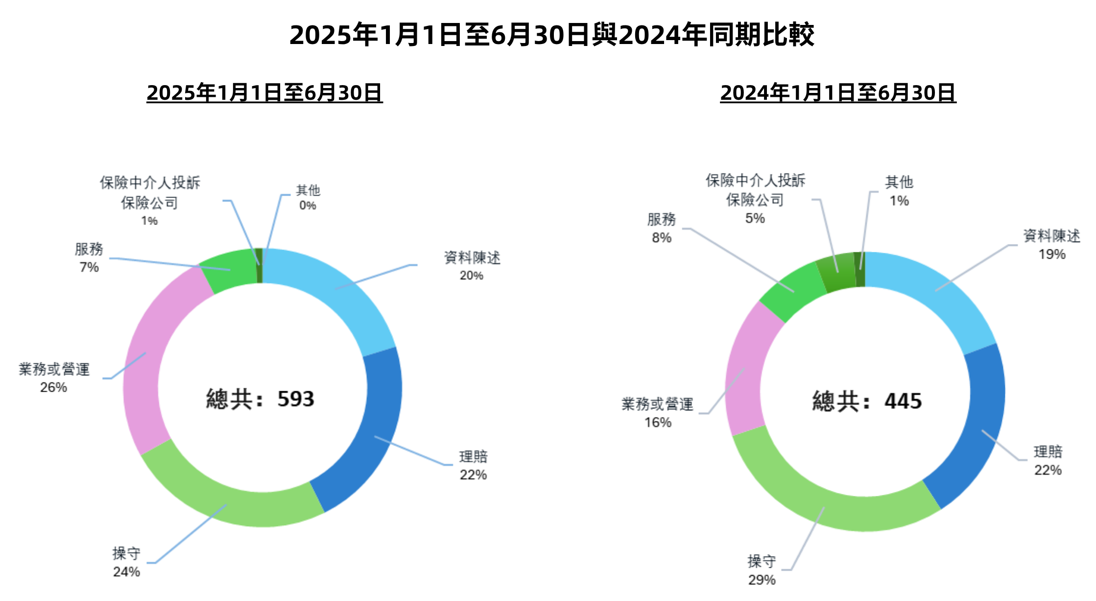 统计数字显示,2025年首6个月保监局接获的投诉(593宗)较2024年同期的6个月(445宗)增加了33%,合共增加了148宗投诉个案。