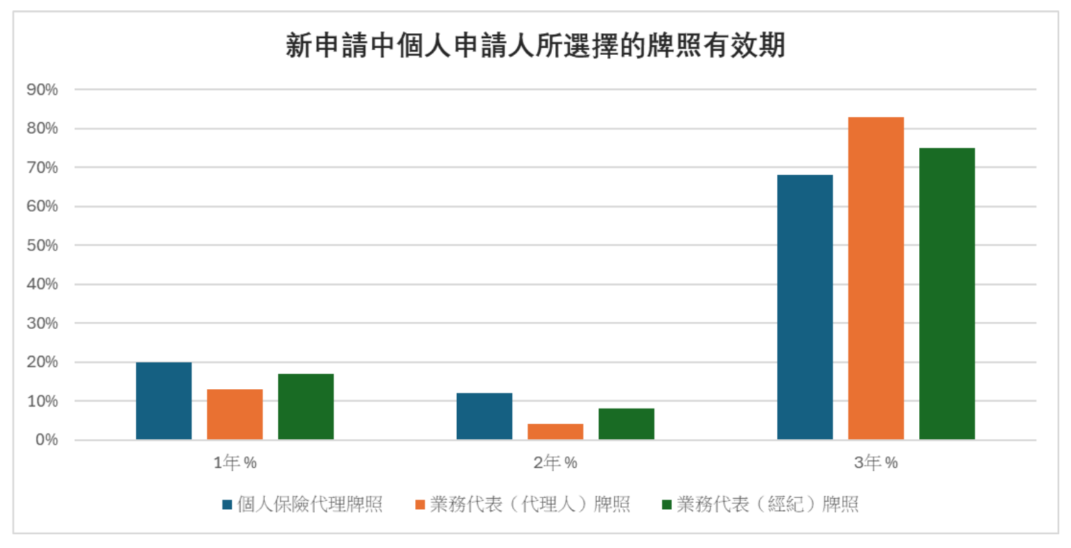 即使三年期的牌照需支付较高的前期费用,其较低年均成本仍促使大多数中介人作出此选择。此行为有助保障保单持有人,鼓励中介人长期服务及关系的延续。