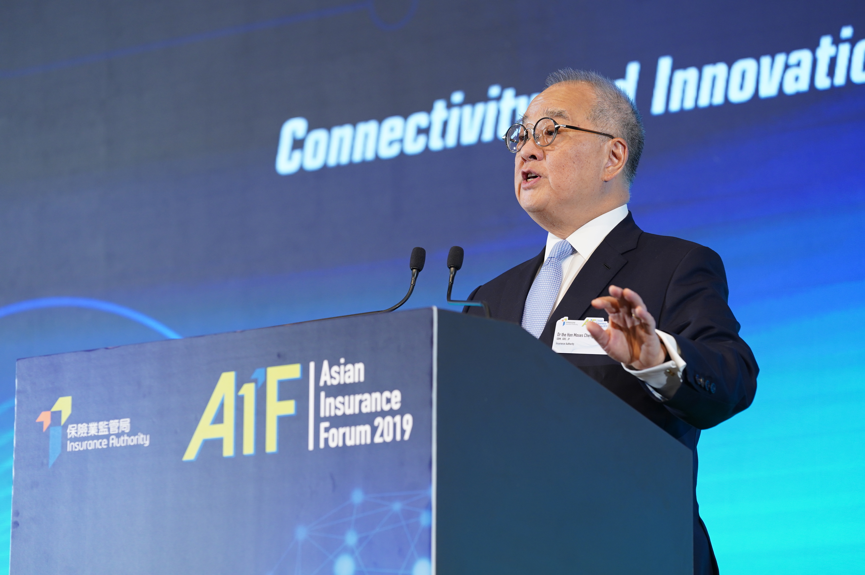 保監局主席鄭慕智博士於亞洲保險論壇向嘉賓致辭。