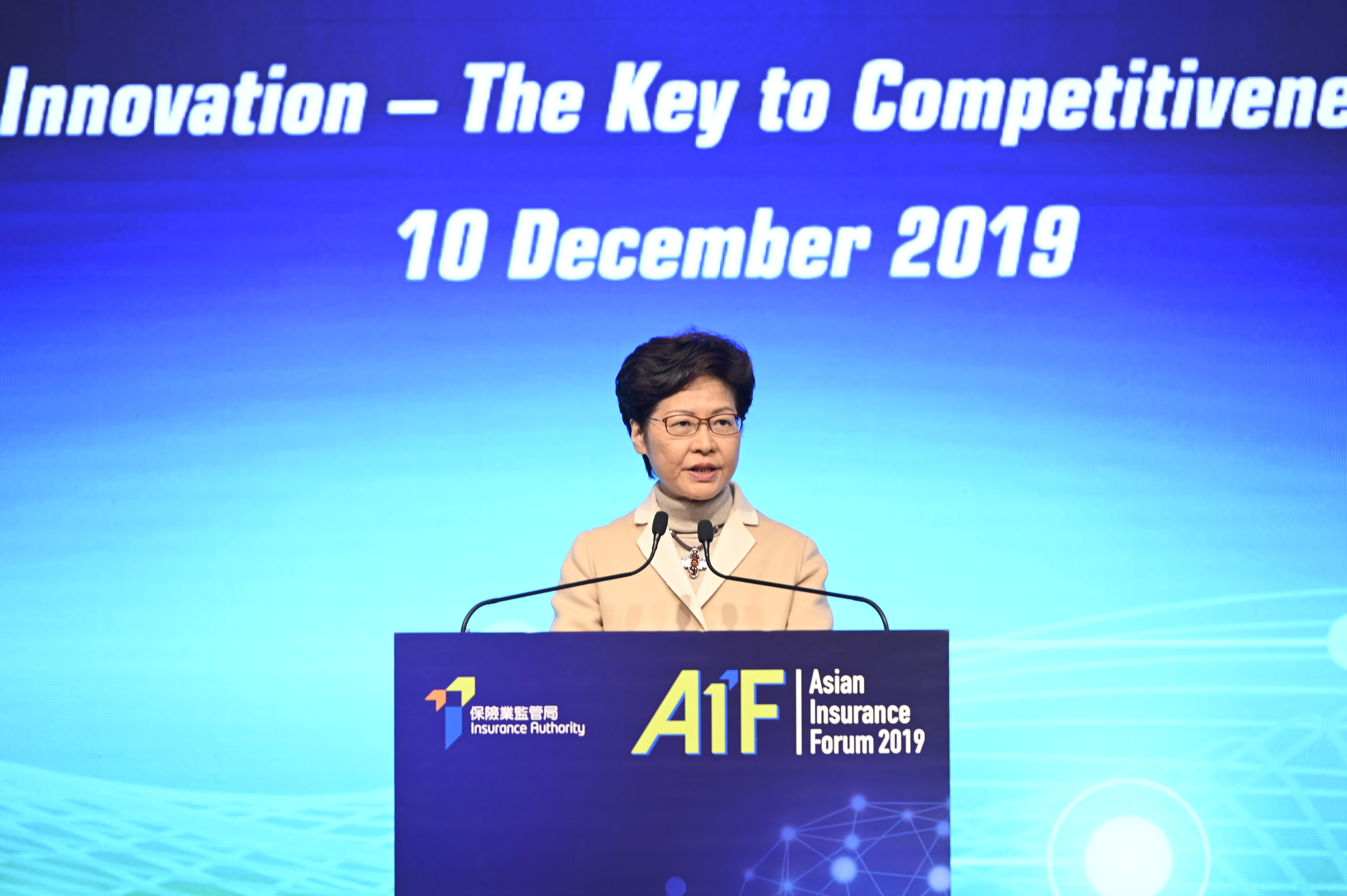 香港特別行政區行政長官林鄭月娥女士於亞洲保險論壇上致辭。