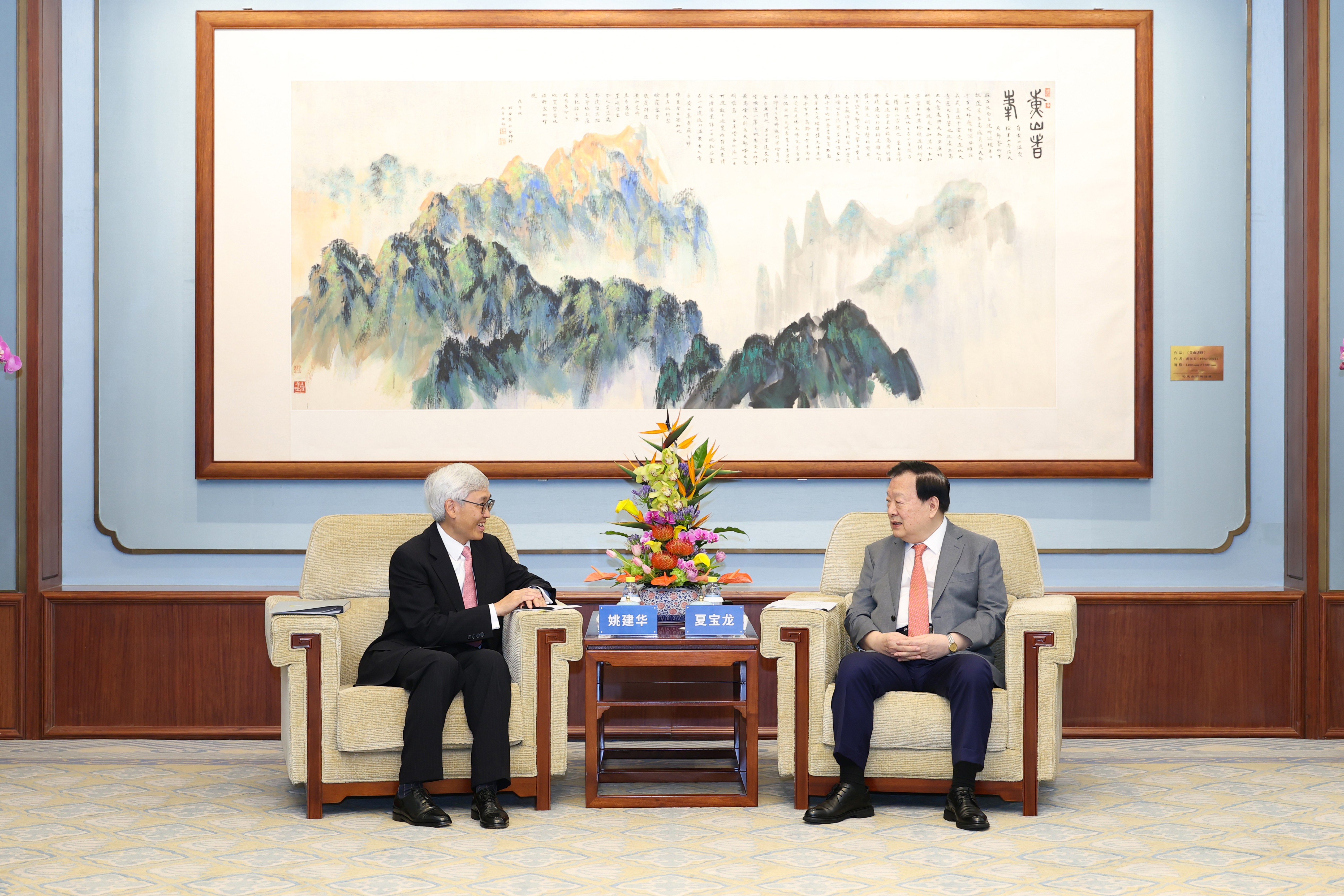 保險業監管局主席姚建華先生(左)在北京拜會中央港澳工作辦公室主任、國務院港澳事務辦公室主任夏寶龍先生(右)。